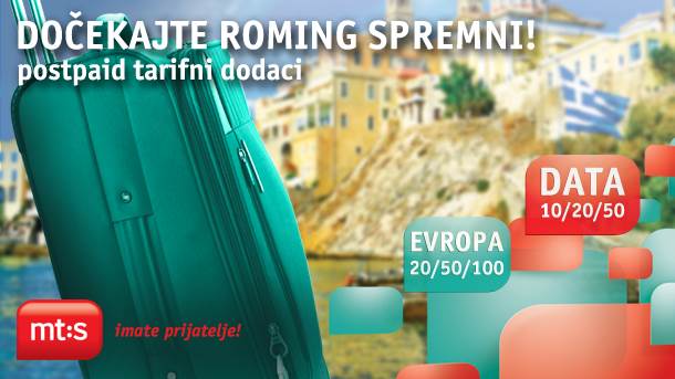 Na raspolaganju su vam tri Evropa roming dodatka za povoljne razgovore i SMS (Evropa 20, Evropa 50 i Evropa 100) i tri DATA postpaid roming dodatka (DATA 10, DATA 20 i DATA 50) za povoljan prenos podataka. Odaberite roming dodatak koji vam najviše odgovara! Odabrani tarifni dodatak važi 30 dana od dana aktivacije.