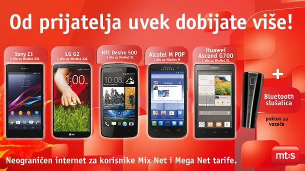 Handsfree uređaj poklanjamo korisnicima koji potpišu ugovor na 12, 24 ili 36 meseci za bilo koju postpaid tarifu ili tarifu mt:s Kontrola troškova. Naravno, korisnici mogu da potpišu ugovor i za neki od promo postpaid paketa sa telefonom, da iskoriste povoljnost promocije 50% umanjena pretplata ili najnovije promotivne povoljnosti za nove postpaid korisnike. Handsfree uređaj poklanjamo i korisnicima koji potpišu ugovor na 12 ili 24 meseca za neki od Box paketa.