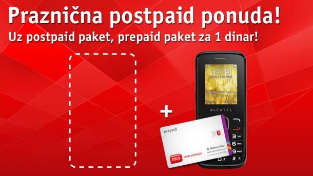 Iskoristite povoljnosti naše praznične ponude, opredelite se za postpaid paket sa mobilnim telefonom ili tablet uređajem, uz postpaid tarifu, tarifu mt:s Kontola troškova, Mobilni Net ili Box paket, i po ceni od samo 1 dinar dobijate prepaid paket sa telefonom.