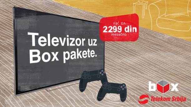 Kako bi dodatno uštedeli, a korisničko iskustvo upotpunili, Telekom Srbija je novim i postojećim korisnicima koji objedine usluge fiksne, mobilne, Interneta i digitalne televizije u jedinstveni Box paket spremio specijalnu ponudu – kupovinu TV-a ili Sony PlayStation konzole na 12 rata bez kamate.