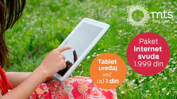 Bez obzira gde se nalazite, više ne morate da brinete da li ćete stići na vreme da završite posao ili trenutke opuštanja upotpunite kvalitetnom Internet vezom. Uz mts paketInternet svuda, možete da uživate u stabilnoj i brzoj Internet vezi paketa koji objedinjuje kućni i mobilni Internet satablet uređajem po ceni već od 1 dinar.