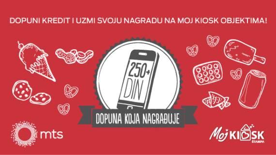 Bilo da ste pripejd korisnik ili korisnik tarifnog profila Kontrola troškova, za svaku dopunu koju do 31. decembra 2015. godine izvršite u prodajnim objektima Moj kiosk u iznosu od 250 dinara ili više, dobijate 10% vrednosti dopune u vidu poena koje možete da iskoristite za kupovinu proizvoda u istim objektima.