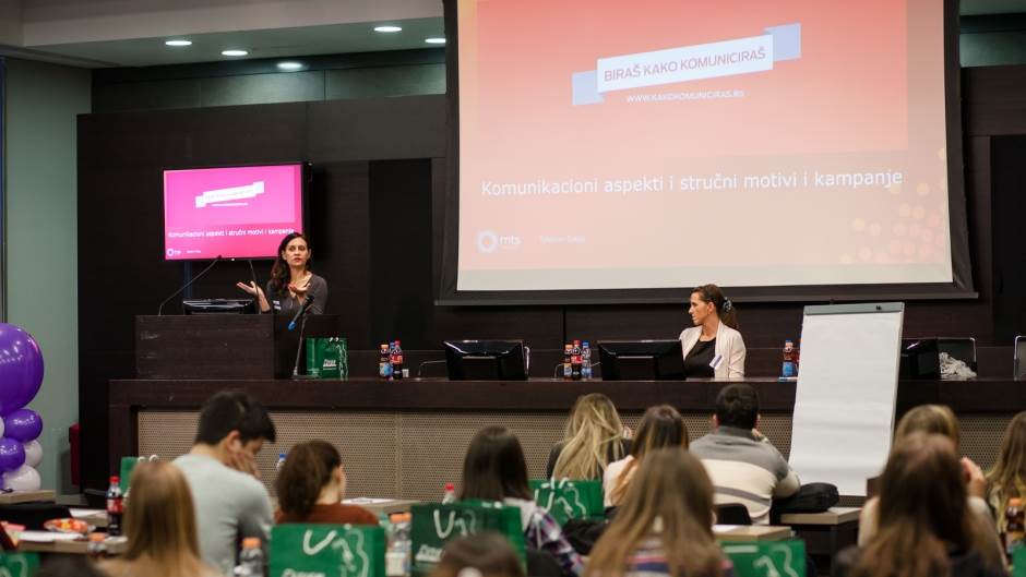 Predstavnice kompanije, Milica Popović iz Direkcije za tehniku i Ivana Filipović iz Sektora za PR, potrudile su se da studentskoj publici različitih obrazovnih profila predstave pojam društveno odgovorne kampanje, načine vođenja i komunikacione aspekte, kao i stručne, tehničke motive koji su doveli do pokretanja kampanje. „Uz edukativni film koji prati kampanju „Biraš kako komuniciraš“ objasnili smo komunikacione izazove sa kojima smo se susretali tokom pripreme kampanje – kako opštoj javnosti približiti prilično komplikovanu tehničku materiju na razumljiv način. Bilo je veoma korisno da kroz pitanja i diskusiju sa studentima saznamo kako generacija stasala u digitalnoj eri gleda na ovu temu“, izjavila je Ivana Filipović, glavni menadžer za korporativnu društvenu odgovornost.