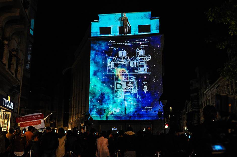 Ovaj jedinstveni multimedijalni događaj, prikazan na fasadi Instituta Servantes i Zadužbine Nikole Spasića, dočarao je slikom i zvukom najvažnije trenutke i otkrića iz života genijalnog izumitelja.