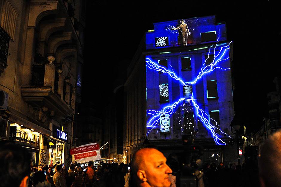 Povodom 160 godina od rođenja slavnog naučnika Nikole Tesle, kompanija Telekom Srbija upriličila je inovativnu 4D projekciju umetničkog projekta „Teslin vremeplov“ u Knez Mihailovoj ulici u Beogradu.