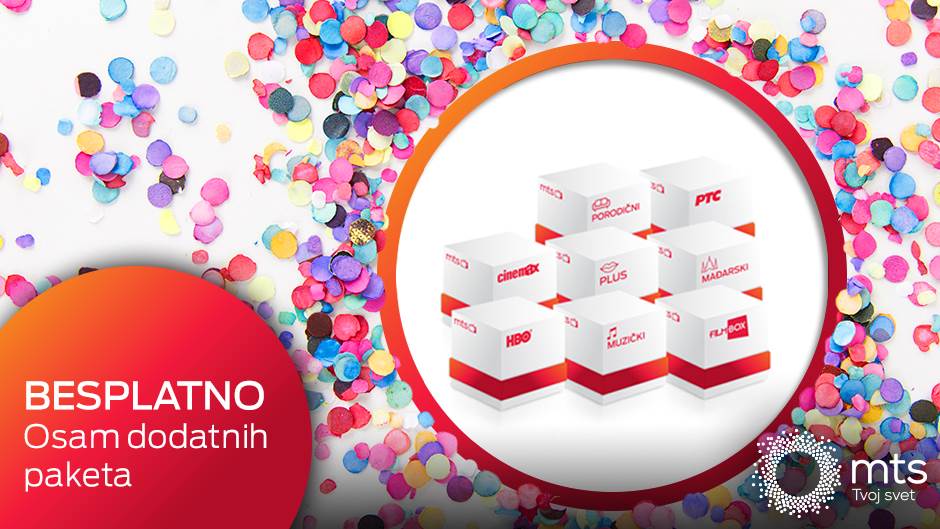Ukoliko se opredelite za mts TV uslugu ili neki od Box paketa koji sadrži mts TV, pored Osnovnog TV paketa, koji vam nudi preko sto kanala za uživanje uključujući 5 Arena Sport kanala, očekuju vas i dodatni TV paketi: HBO, Cinemax, Filmbox, Porodični, Plus, RTS, Muzički i Mađarski uz čije sadržaje možete besplatno da uživate 30 dana.
