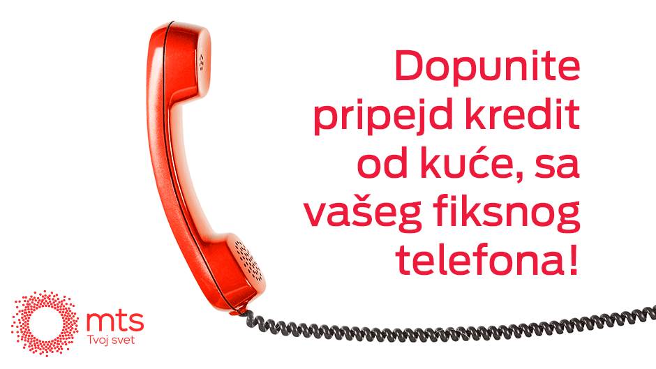 U bilo koje doba dana i noći možete da, od kuće, sa vašeg fiksnog telefona, na brz i jednostavan način dopunite kredit za svoj ili neki drugi mts pripejd broj u iznosu od 200, 500 ili 1.000 dinara. Sve što je potrebno da uradite jeste da pratite ovih pet jednostavnih koraka: