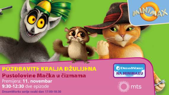 Najmlađi, ali i oni stariji koji vole da gledaju avanture popularnih crtanih junaka, će od sutra, 11. novembra, moći da uživaju u najpopularnijim DreamWorks animiranim serijama na Minimax kanalu, koji se nalazi u Osnovnom mts TV paketu, na poziciji 401.