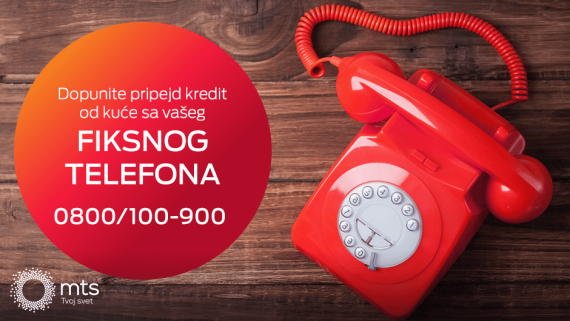Koliko puta vam se desilo da vam treba pripejd kredit, a da ne možete da izađete iz kuće da ga dopunite? mts ima rešenje za vas – dopunu pripejd kredita u visini od 200, 500 ili 1.000 dinara pozivom sa vašeg fiksnog telefona.