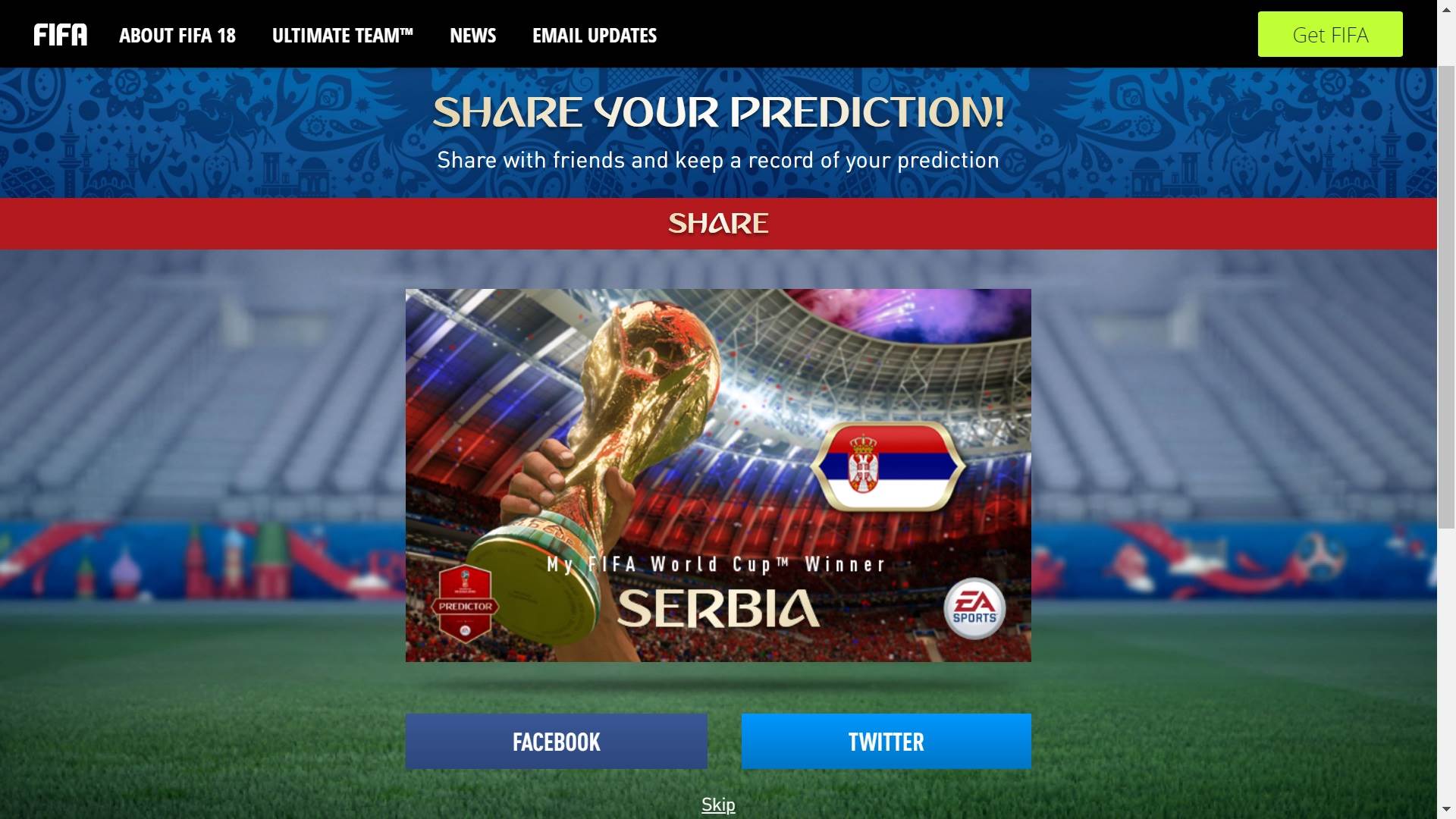 FIFA 18 je dobila besplatan dodatak World Cup, omogućivši fanovima igre i fudbala da uživaju u Svetskom prvenstvu na nov način - igranjem omiljene igre. U igri je sve moguće, pa i to da Srbija osvoji Svetsko prvenstvo!
