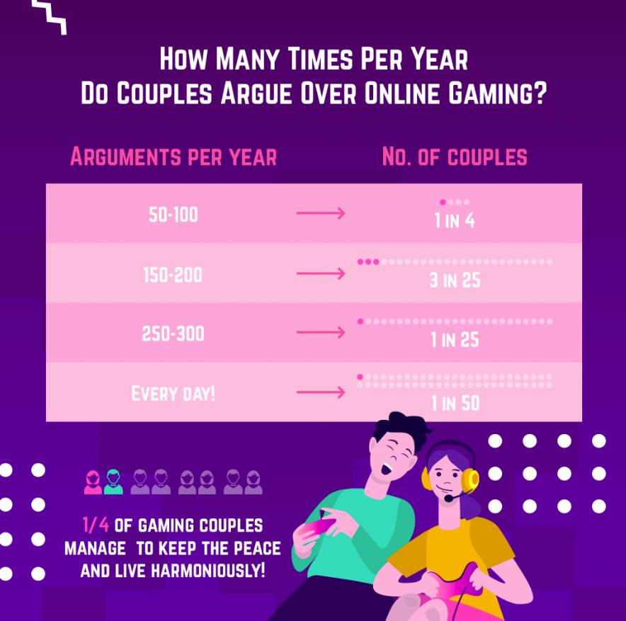 Uglavnom su žene te koje žele da stave tačku na video igre, ali ni muškarci ne kaskaju po tom pitanju. U proseku jedna od četiri žene neuspešno reaguje zbog ovog problema, dok jedan od pet muškaraca ima isti problem. Oko 25% ispitanika muškog roda je razmišljalo da raskine sa svojom partnerkom zbog svađe oko video igara, dok 17% žena je isto to htelo da uradi.