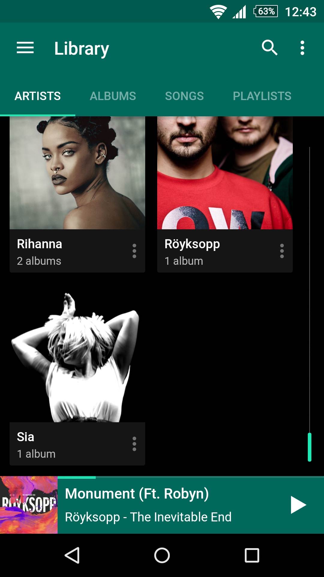 Muzički plejer iz Googleove radionice. Od kako je predstavljen Material dizajn, ova aplikacija se konstanto unapređuje, tj. njen izgled. Ako ste bili te sreće kao i ja, i ako partite razvoj Play Music-a od samog početka, znate da je moguće prebacivanje pesama, zapravo celih albuma na cloud. U početku je bilo ograničenje od 20.000, danas je to povećano na 50.000 pesama. Ako pak niste, jer u Srbiji ova mogućnost još uvek nije dostupna, plejer možete koristiiti za offline muziku, onu koja se nalazi na telefonu. Odlično izgleda i radi. Podržava i Android Wear. Besplatan je.
