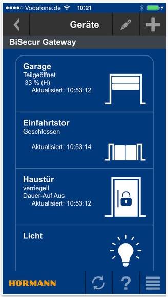 Dodirom na ekranu upravljate motorima garažnih vrata i kapija, kućnim vratima kao i drugim električnim uređajima koji su opremljeni sa Hörmann bežičnim prijemnicima, na primer, osvetljenjem.