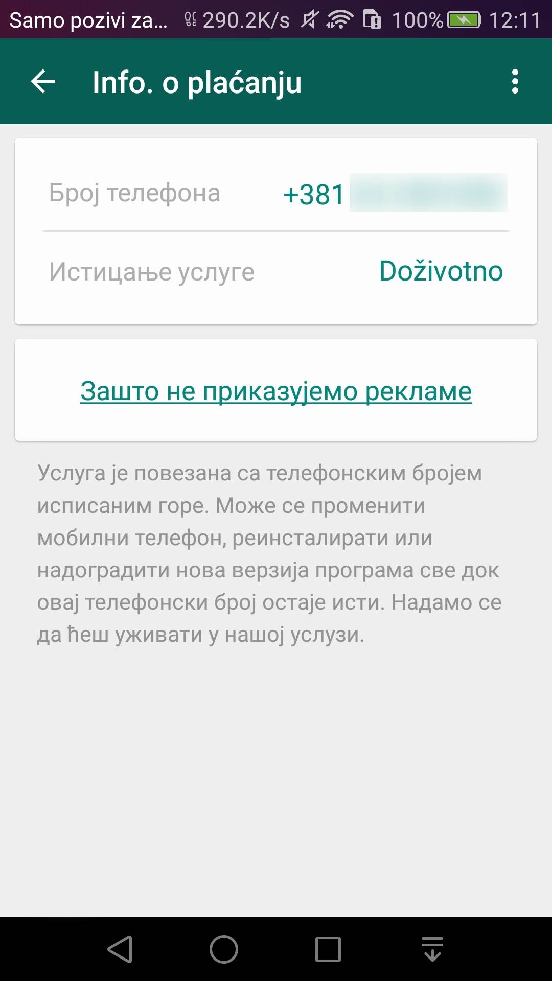 WhatsApp je u Srbiji uglavnom bio besplatan i pretplata se obnavljala bez naplate nakon prve godine, uz sporadične lažne objave kako će WhatsApp u Srbiji biti naplaćivan kad korisniku istekne aktivan besplatan period. Dakle, od toga nema ništa!