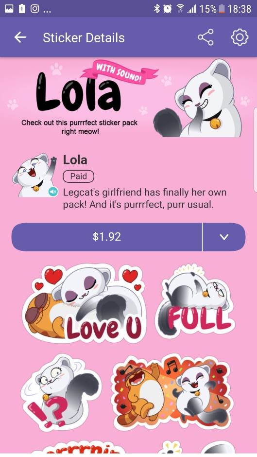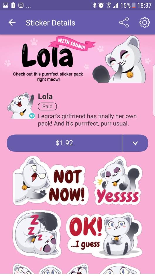 Druga novost je početak rada stikera tj. nalepnica koje imaju i zvuk. Kad primite takvu nalepnicu pored nje će biti prikazana oznaka zvuka, koji će se nakon klika reprodukovati. Za sada vam je na raspolaganju mačka Lola, paket nalepnica koji se prodaje za oko 1.99 dolara (oko 230 dinara), ali vrlo brzo možete da očekujete nove i besplatne pakete.