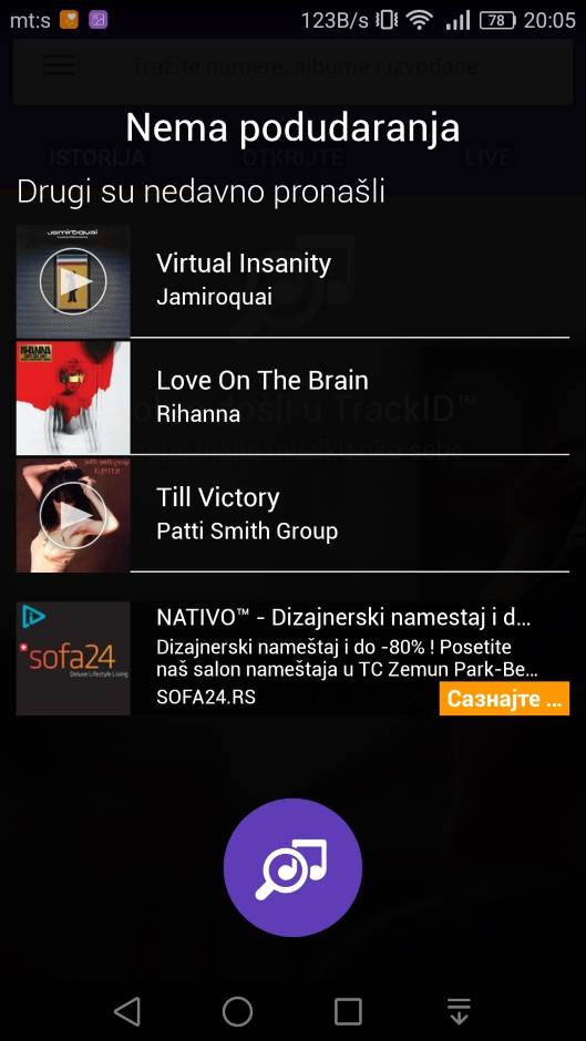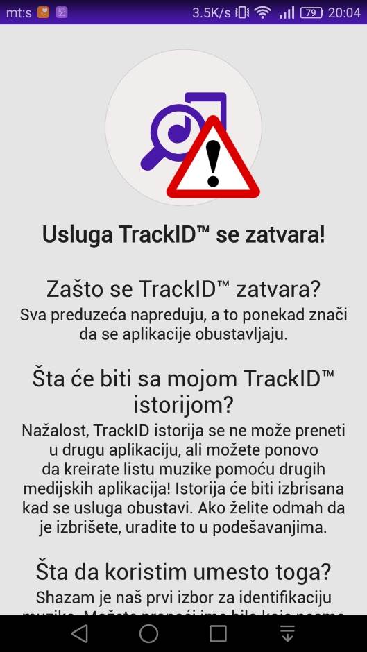 I, dragi moji, to je to. Track ID preporučuje da pređete na Shazam, aplikaciju koja, takođe, nudi prepoznavanje muzike uživo.