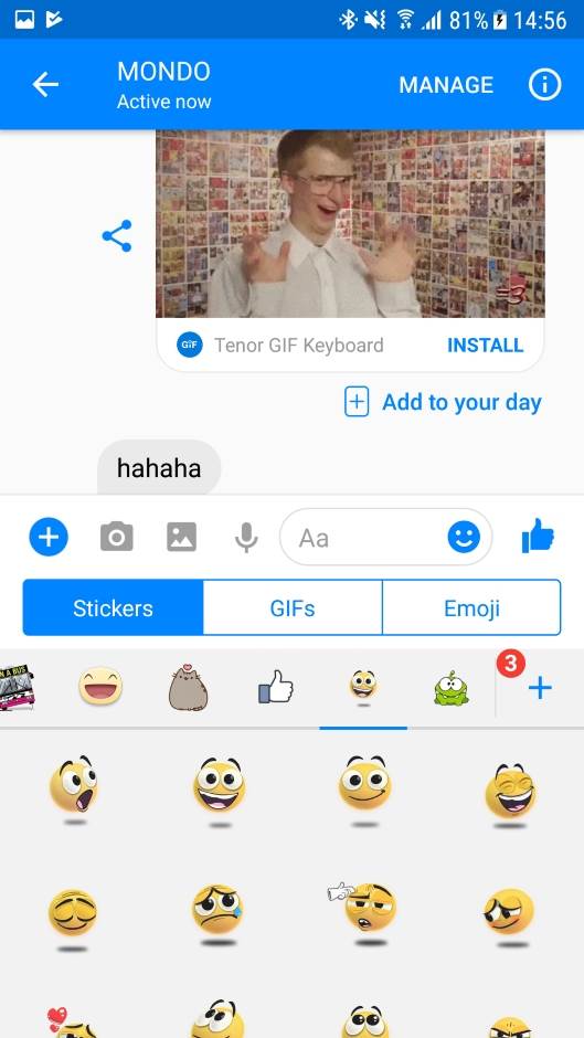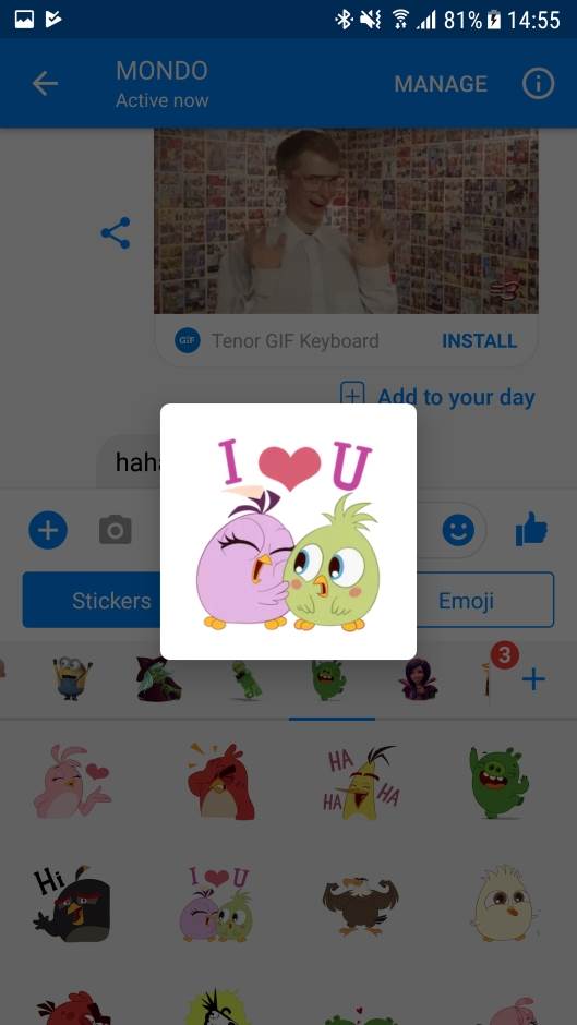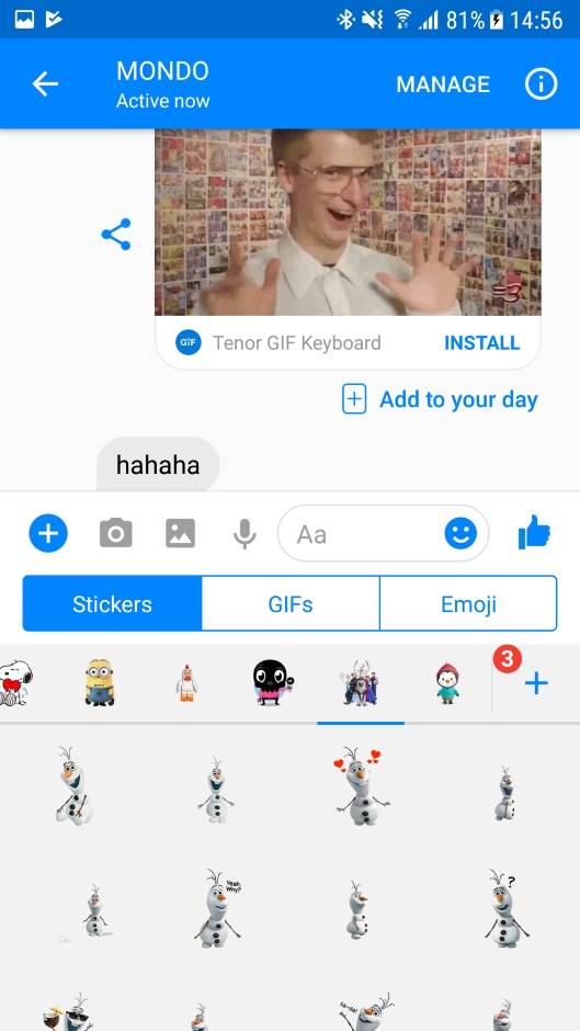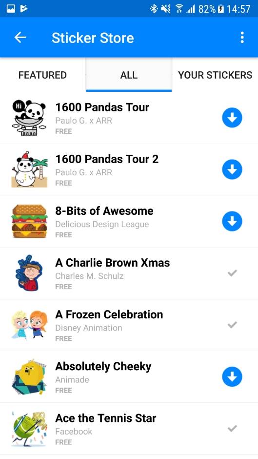 Messenger: Facebook aplikacija za dopisivanje izdvaja se po tome što su svi stikeri potpuno besplatni, računajući i one premijum, među kojima su junaci filmova, crtanih filmova, popularnih serija i drugih. Messenger ima ogromnu kolekciju stikera koje možete da pretražujete i neki od njih su i animirani. Stiker iz ponude možete da uveličate pre slanja tako što ćete da tapnuti i zadržati.
