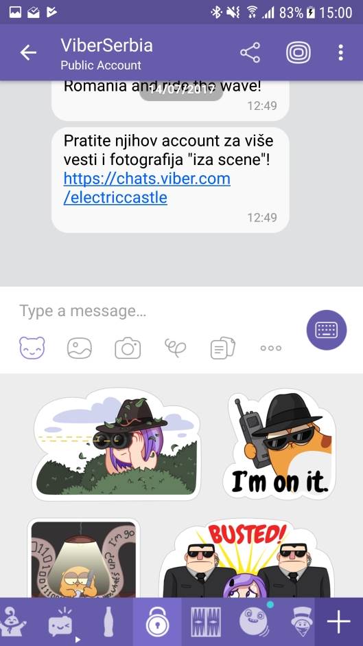 Viber: Među prvima je uveo stikere, a u ponudi je izuzetno veliki broj premijum nalepnica, koje se plaćaju oko 200 dinara, ali i besplatnih, koje svi mogu da preuzmu. Ono što Viber izdvaja od ostalih je veliki broj domaćih stikera, odnosno sličica koje su ponudile kompanije iz Srbije i regiona, a koje su postale pravi hit među korisnicima. Viber stikri nisu više statični i mogu da se nađu u vidu animacija i sa kratkim zvučnim efektima.