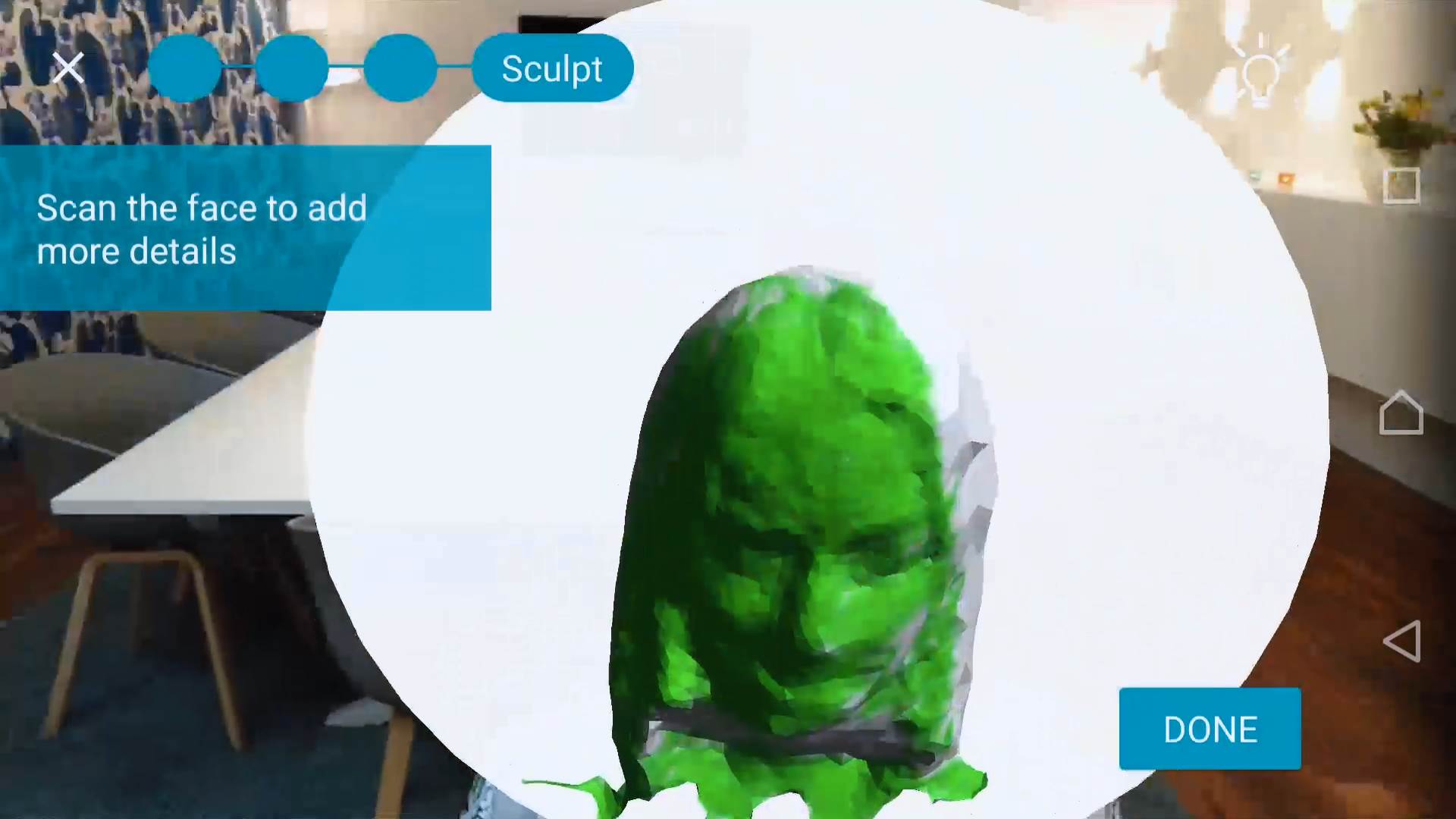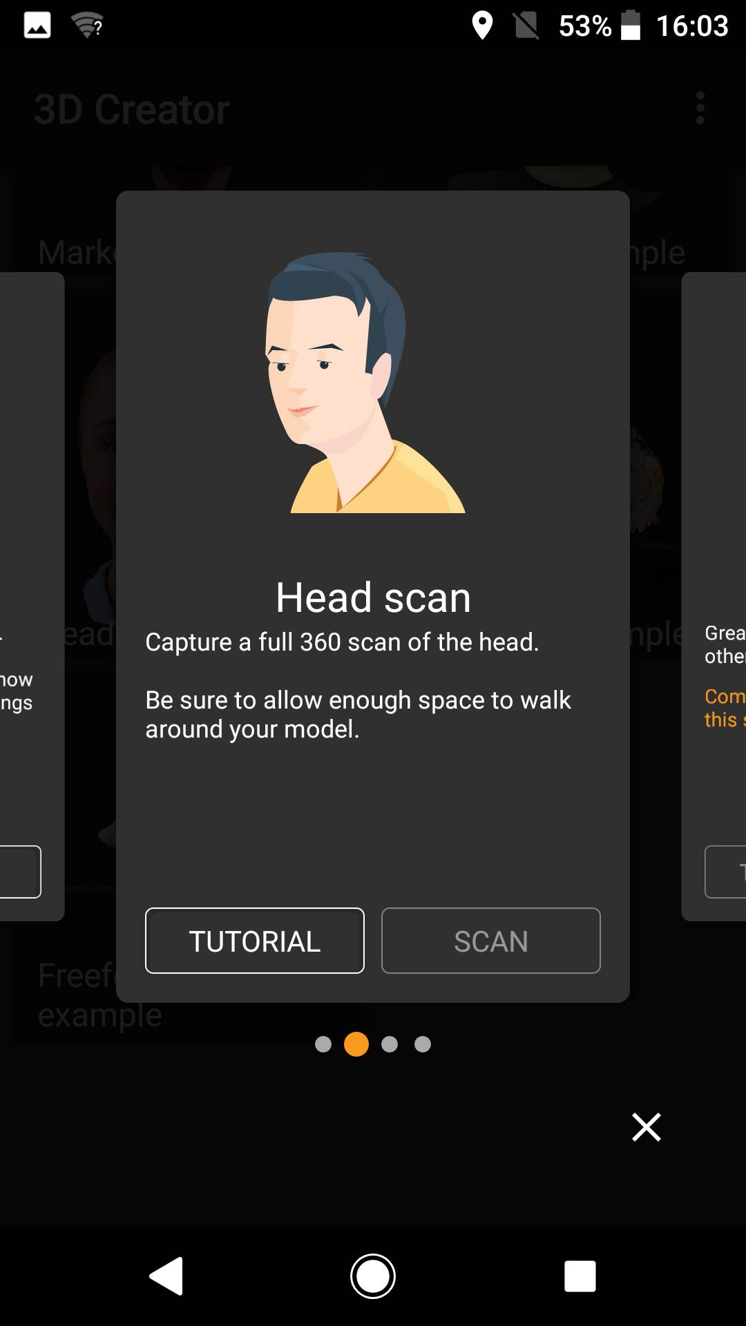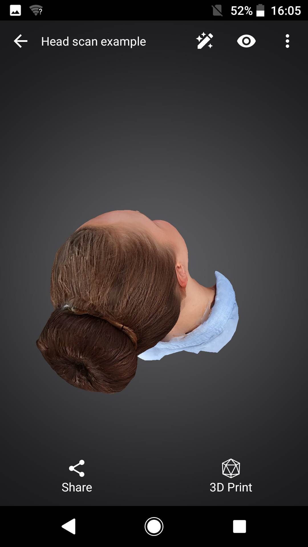 Da biste napravili sopstveni 3D model lica ili glave biće vam potrebna pomoć prijatelja, a prava je šteta što 3D Creator zahteva da se skinu naočare tokom skeniranja. U toku skeniranja skenirana osoba mora u potpunosti da miruje, a onaj ko skenira da obilazi oko nje i trudi se da ruke budu mirne. Skeniranje lica završava se za oko 30 sekundi, a glave za minut.