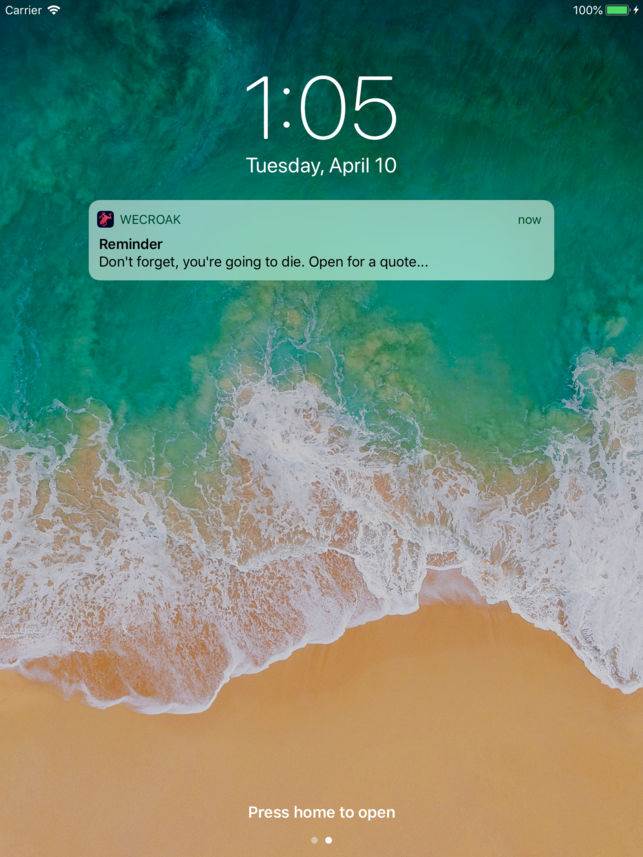 Jedno je sigurno - svi ćemo umreti. Nije sigurno samo to da li želite da vas aplikacija non-stop podseća na to da će se neizbežno desiti ili ne? Ako ste u prvoj grupi - sjajno, imamo pravu stvar za vas - bizarna aplikacija WeCroak eksplicitno će vam staviti do znanja da sat nepovratno otkucava i da svaki put kad vidite poruku vi imate - manje vremena, nego što ste imali prethodnog puta.