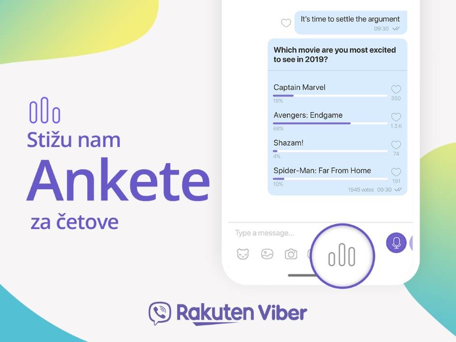 Viber je sa poslednjim ažuriranjem aplikacije uveo Ankete (“Polls“) uživo, čime kreatori jedne od najpopularnijih aplikacija u Srbiji žele da pospeše razmenu mišljenja u grupnim četovima i Zajednicama. Nova funkcija pruža dodatne mogućnosti korisnicima da se izraze u međusobnoj komunikaciji, i omogućava im da i ovim putem razmene stavove i izraze svoja osećanja po pitanju raznih tema - na lak i brz način.