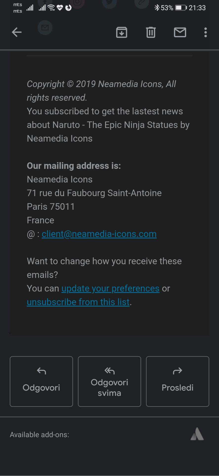 Naša verzija aplikacije, koja ima Dark Mode je GMail v2019.09.15.270135155.