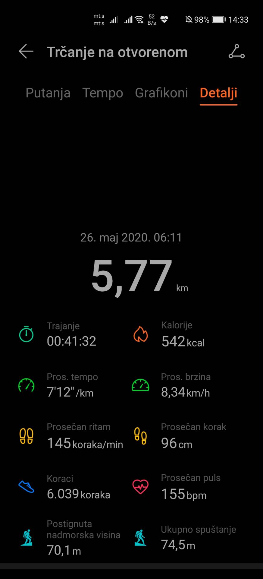 Huawei Health je pregledna, vrlo jednostavna aplikacija, koja kombinuje podatke prikupljene sa telefona i sata ili narukvice i objedinjene ih prikazuje. Brza je, lako se koristi, dostupna je na srpskom jeziku i možete da upravljate svim parametrima Huawei pametnih gedžeta, koji se prodaju kod nas i potpisuju ih ove dve kompanije. Preko Huawei Health aplikacije vrše se i ažuriranja softvera Huawei Watch GT 2e i drugih satova i opreme, prave muzičke liste i prebacuje muzika iz memorije telefona na sat, kako biste mogli preko sata i bežičnih slušalica da slušate muziku i bez telefona (slušalice se uparuju sa satom kroz meni Watch GT 2e i drugih Huawei uređaja).