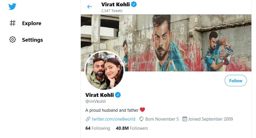 Pored Instagrama Virat je popularan i na 40,8 miliona pratilaca na Twitteru i 36 miliona na Facebooku.Pored toga što je prvi Indijac koji je stigao do 100 miliona pratilaca na Instagramu, on je ujedno i prvi Azijat i prvi igrač kriketa koji je ovo postigao.
