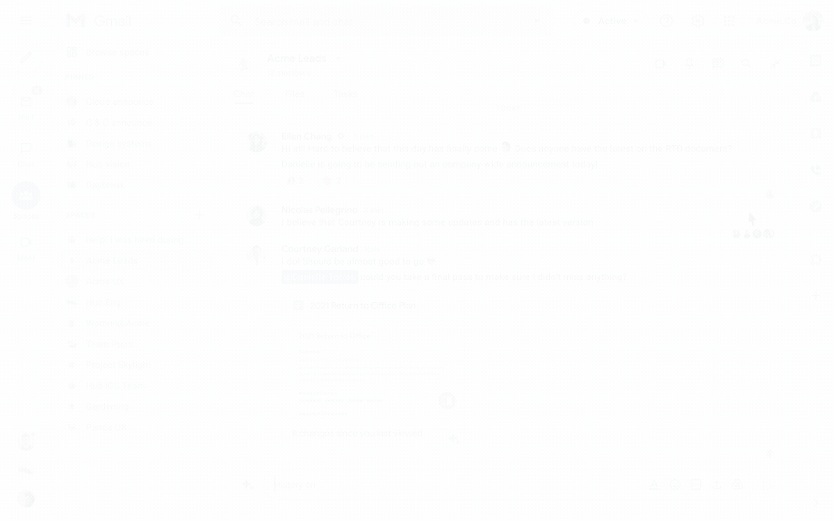 Pored Google Chat, tu su Rooms i opcija Spaces koja će se uskoro pojaviti. Rooms je odličan za komuniciranje sa članovima porodice i grupom prijatelja, te služi kao grupna soba za dopisivanje, prenosi TechCrunch. Spaces je u suštini ista stvar kao Rooms, ali ima nešto više opcija, više emotikon reakcija, alatki za moderatore, itd... Ta opcija može da se uporedi sa aplikacijom Slack ili čak sa Discord javnim grupama.