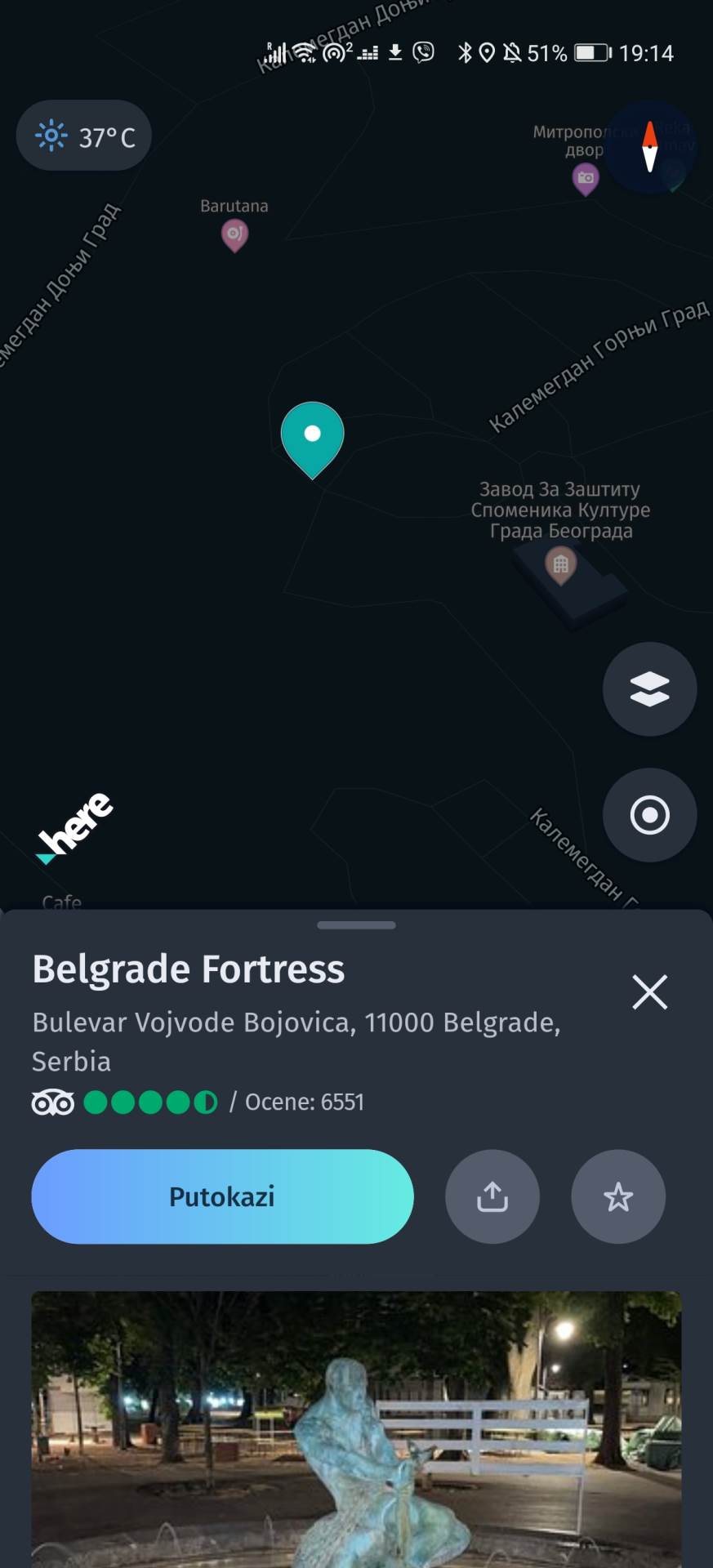 Ukoliko odaberete neku od poznatih lokacija, povezanost sa TripAdvisor servisom će vam prikazati slike, a dobićete i ocene o lokaciji prikazane pri samom vrhu, što je odlična opcija kada tražite smeštaj ili restoran, manje odlična za npr. spomenike. Ukoliko su dostupne, dobićete i informacije o web sajtu i kontaktima pojedinih institucija, prodavnica, hotela i restorana, ukoliko postoje na TripAdvisor servisu.