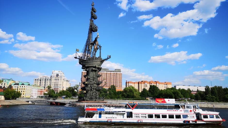 Obale reke Moskve sa pogledom na veliki rečni spomenik i fabriku čokolade.