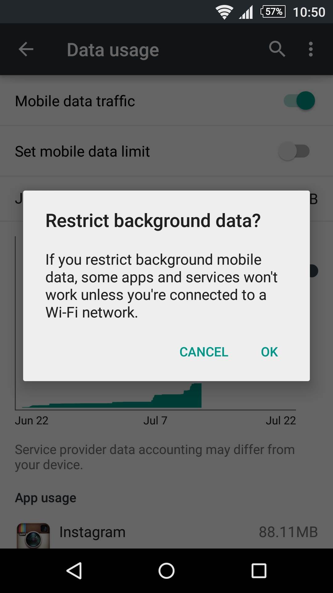 - Postavite mesečni limit i isključite background data opciju. Tako će aplikacije trošiti malo manje interneta dok budu radile u pozadini.