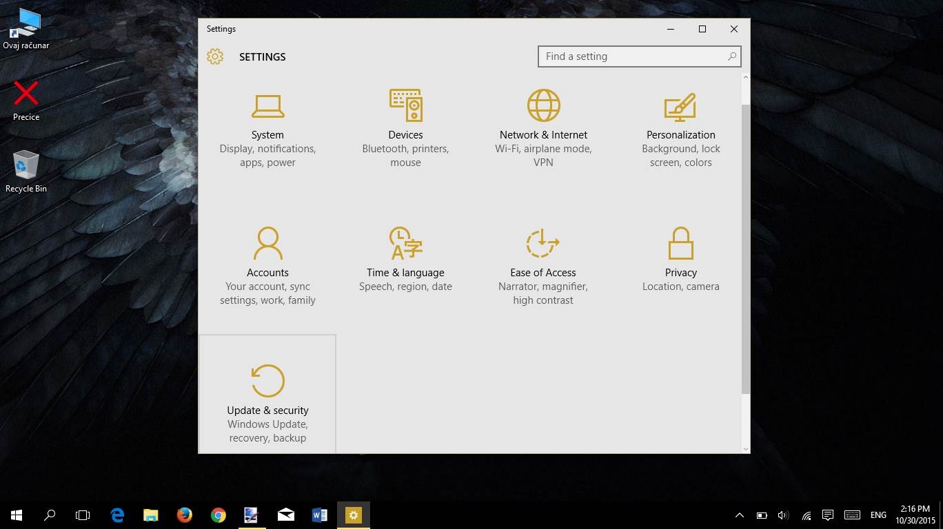 1. Klik na Start, pa Settingsi onda na Update & Security