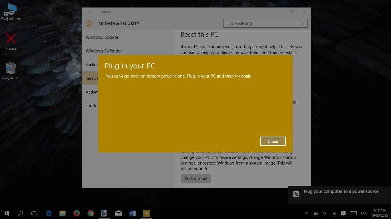 Dobili smo dosta pitanja o tome kako se sa Windows 10 sistema vratiti na prethodni Windows OS i evo uputstva. Imamo za vas najbolji i najbrži način, koji smo ispratili korak po korak i koji lako možete pogledati i u galeriji iznad. Razlozi za deinstalaciju se uglavnom tiču aplikacija i programa koji još uvek ne rade pod Windows-om 10 ili zbog nekih problema sa drajverima koji još nisu rešeni. Takođe, određeni broj vas jednostavno želi da još malo sačeka - probali su, videli šta Windows 10 nudi, ali još uvek nisu sigurni da je to - TO, pa žele da sačekaju još neko vreme.