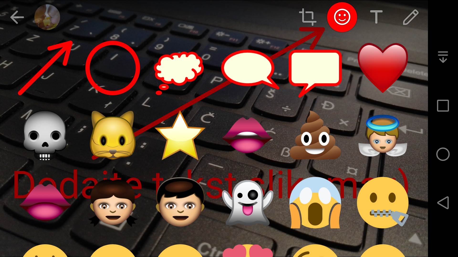 Android telefoni već od danas (neće svi dobiti opciju baš danas) mogu da ažuriraju svoju WhatsApp aplikaciju, koja omogućava ulepšavanje slika i video snimaka. Sve što je potrebno da uradite jeste da pokrenete kameru i napravite fotku ili snimite video, nakon čega ćete na raspolaganju imati opciju da docrtate nešto slobodnom rukom, ubacite smajli ili upišete tekst.
