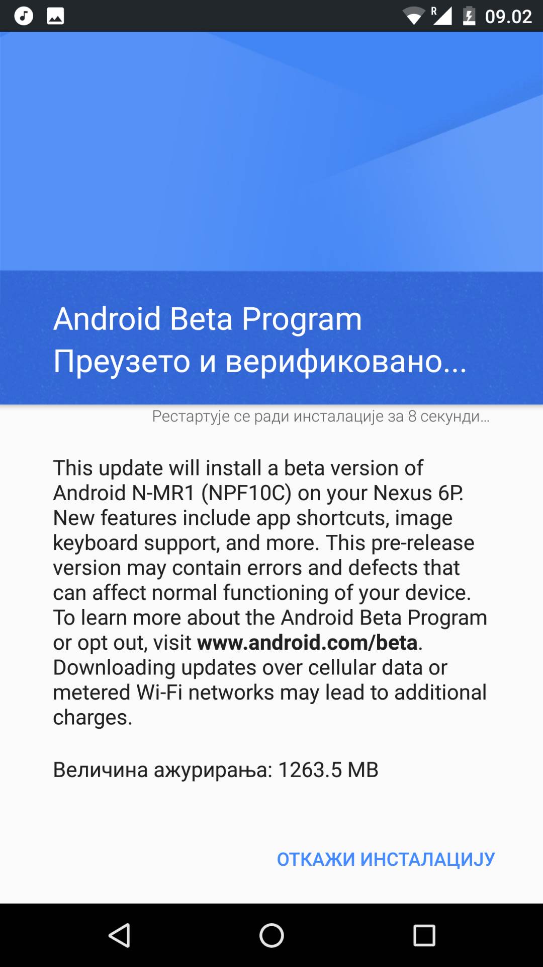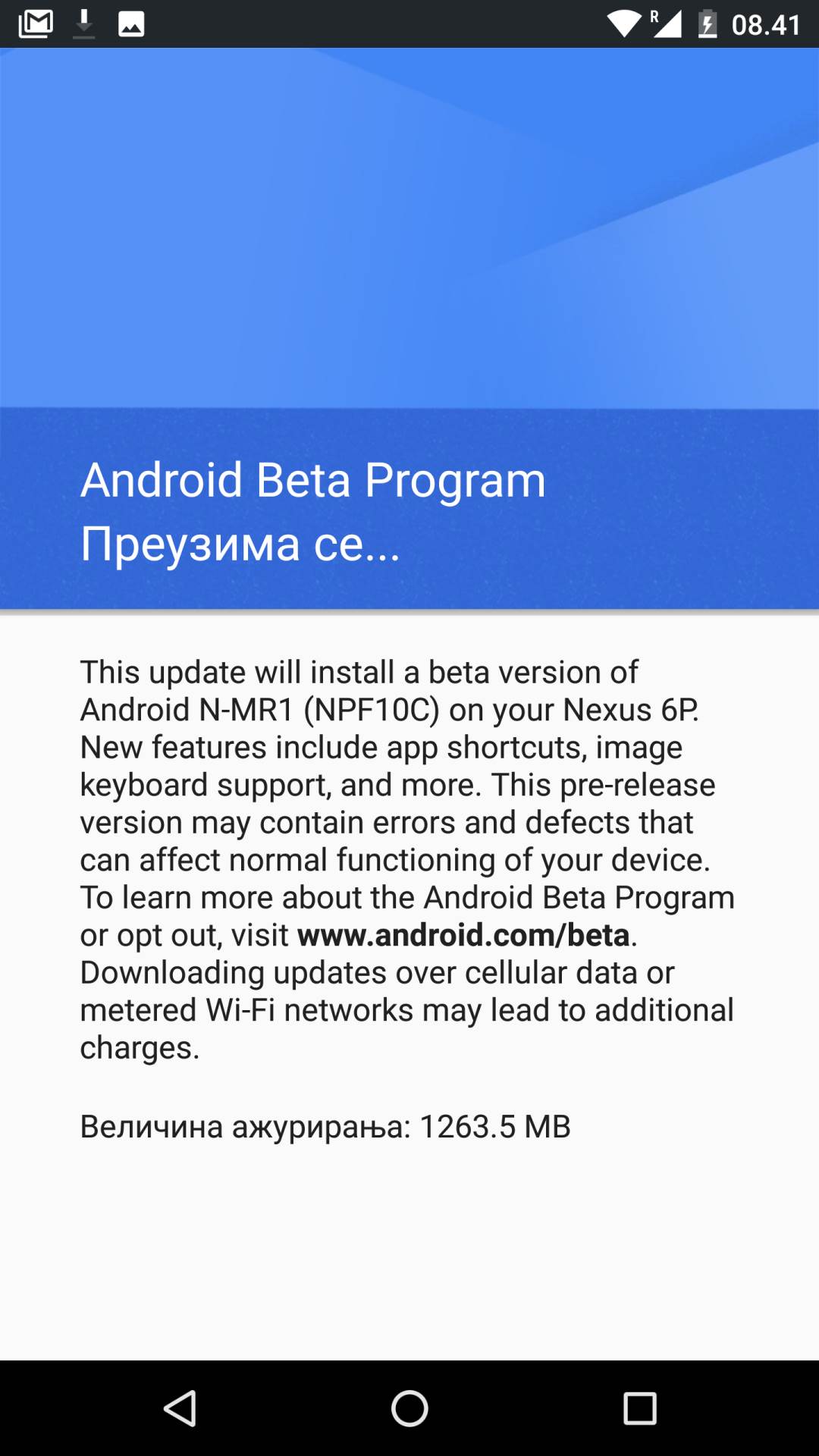 Ako je uređaj podržan za Android Beta program prikazaće se obaveštenje o prijemu Android Nougat 7.1.1 operativnog sistema. Pratite proceduru instalacije, ali prethodno se zakačite na brzu i kvalitetnu internet vezu putem Wi-Fi konekcije, jer je ažuriranje teško skoro 1.3 GB.