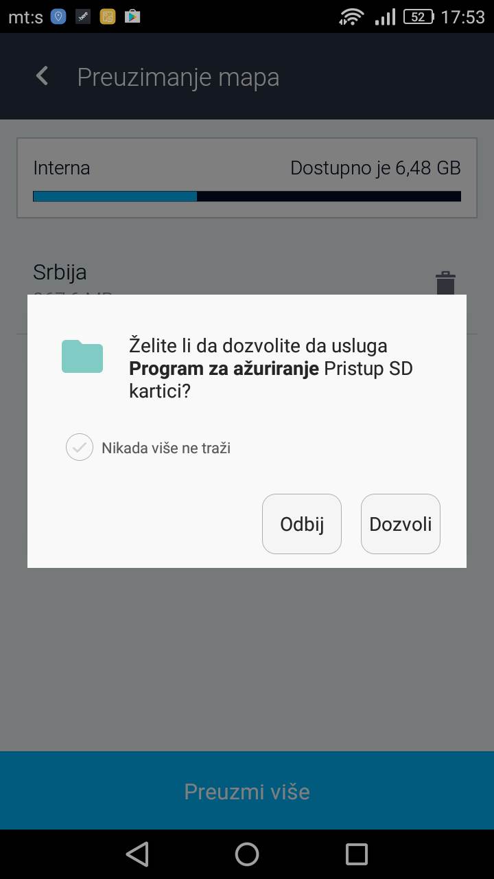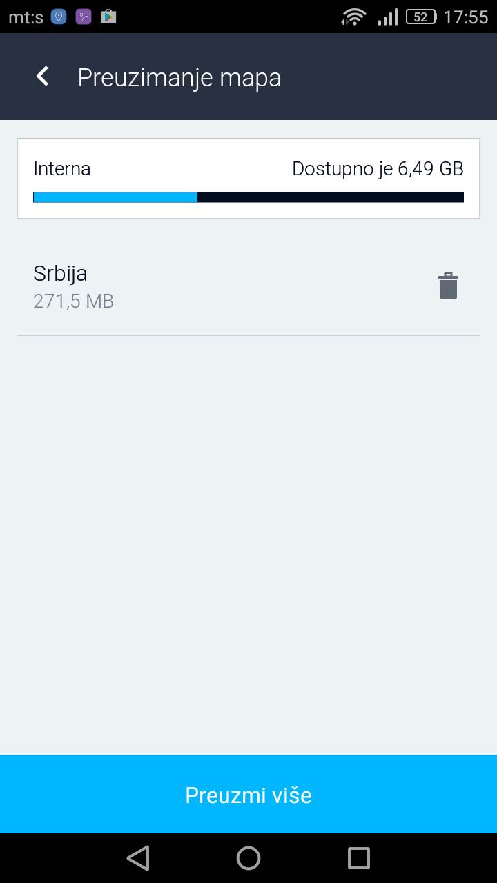 - ne koristi internet saobraćaj kad je u „offline“ modu, ali se mape moraju preuzeti pre odlaska u mod bez interneta