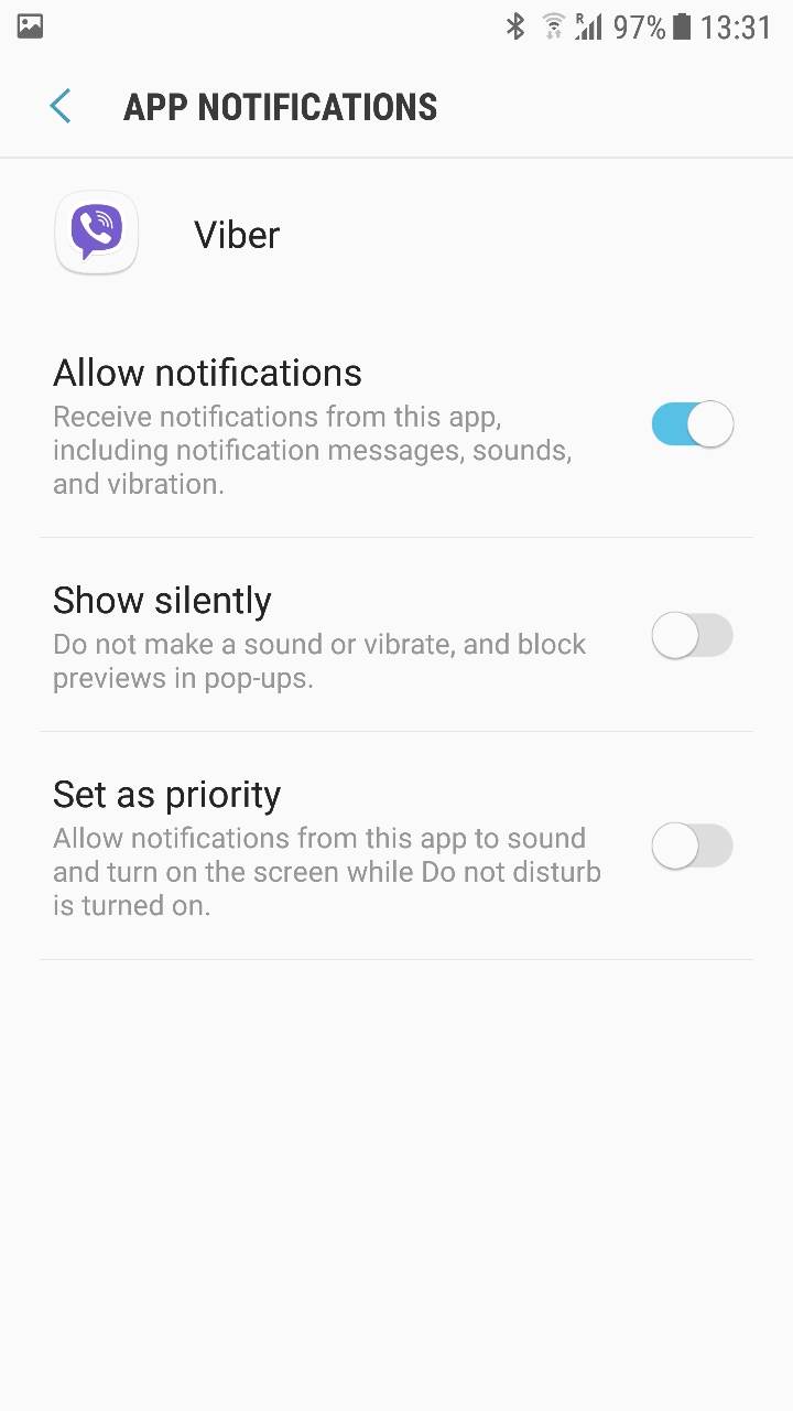 Otvorite Settings, pa uđite u meni Applications. Nađite Viber i uđite u tu aplikaciju. U opcijama tog menija potražite Notifications i ući ćete u novi meni u okviru kog ćete označiti Allow Notifications, a isključiti Show Silently.