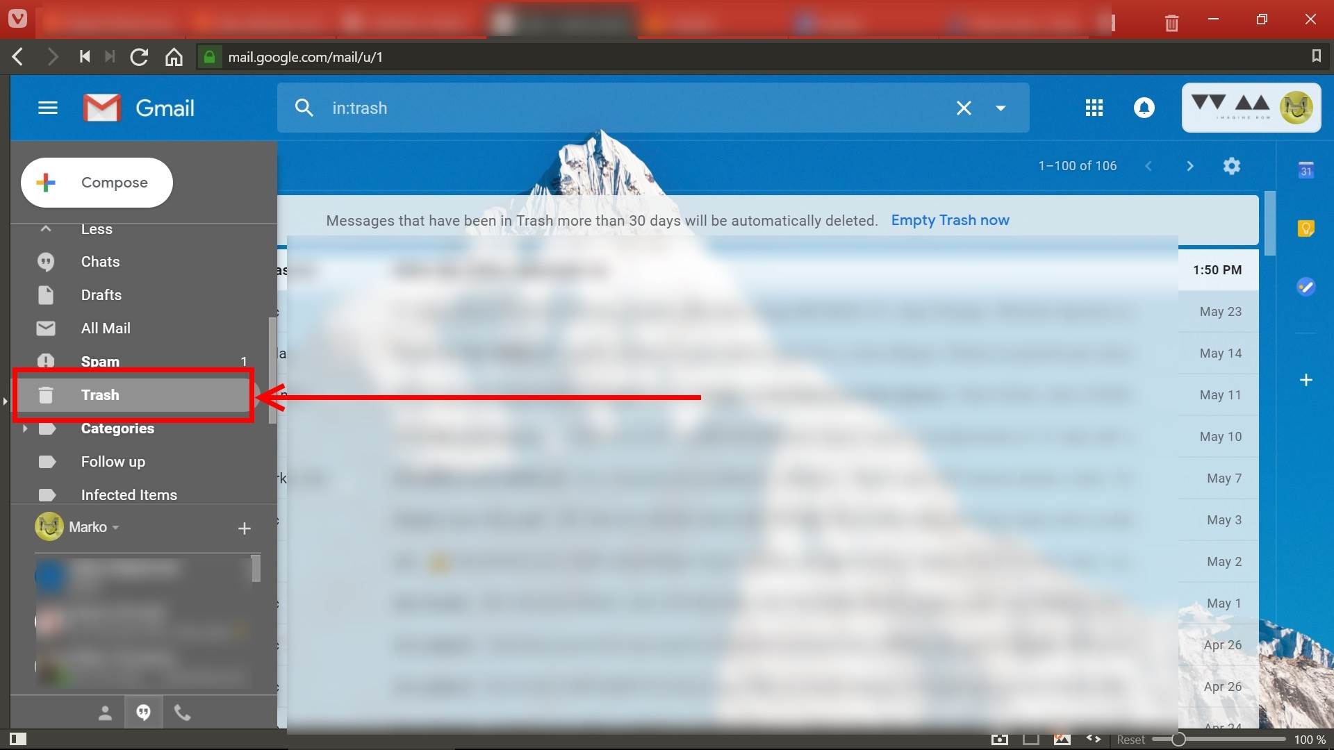 Odmah posle pređite u odeljak “Trash“ i ispraznite ga klikom na “Empty trash now“. Nestaće svi mejlovi iz kante za đubre. Ukoliko se to ne desi, ponovite pređašnji postupak dok odeljak ne bude prazan. Ostalo je još da pritisnete komandu F5 tj. ponovo učitate GMail i u donjem levom uglu, ispod svih mejlova, pogledate koliko je prostora u memoriji oslobođeno.