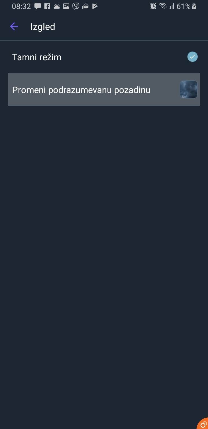 U istom meniju možete da promenite i sliku pozadine četova, u neku tamnu, kako biste na OLED, AMOLED i drugim “derivatima“ tih ekrana mogli dodatno da uštedite energiju baterije i produžite autonomiju.