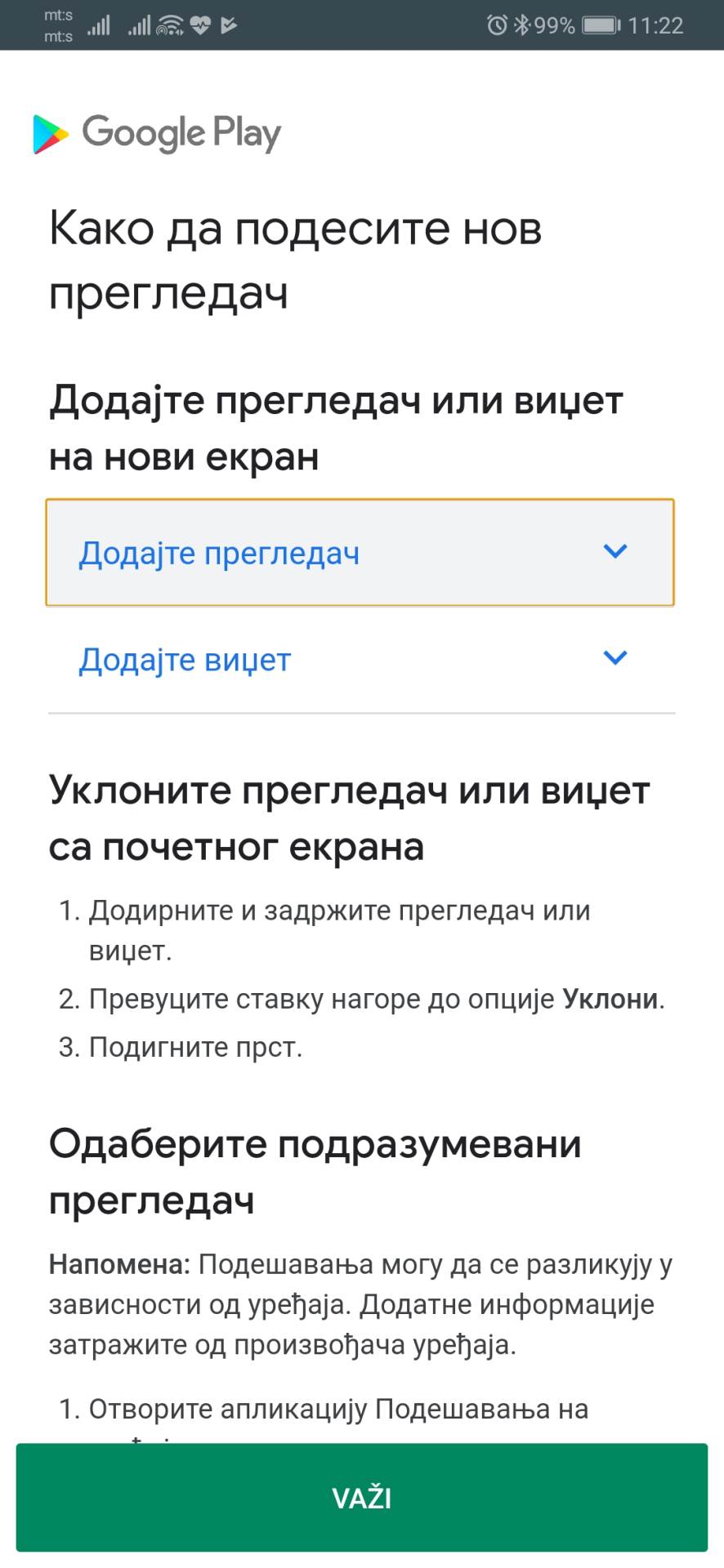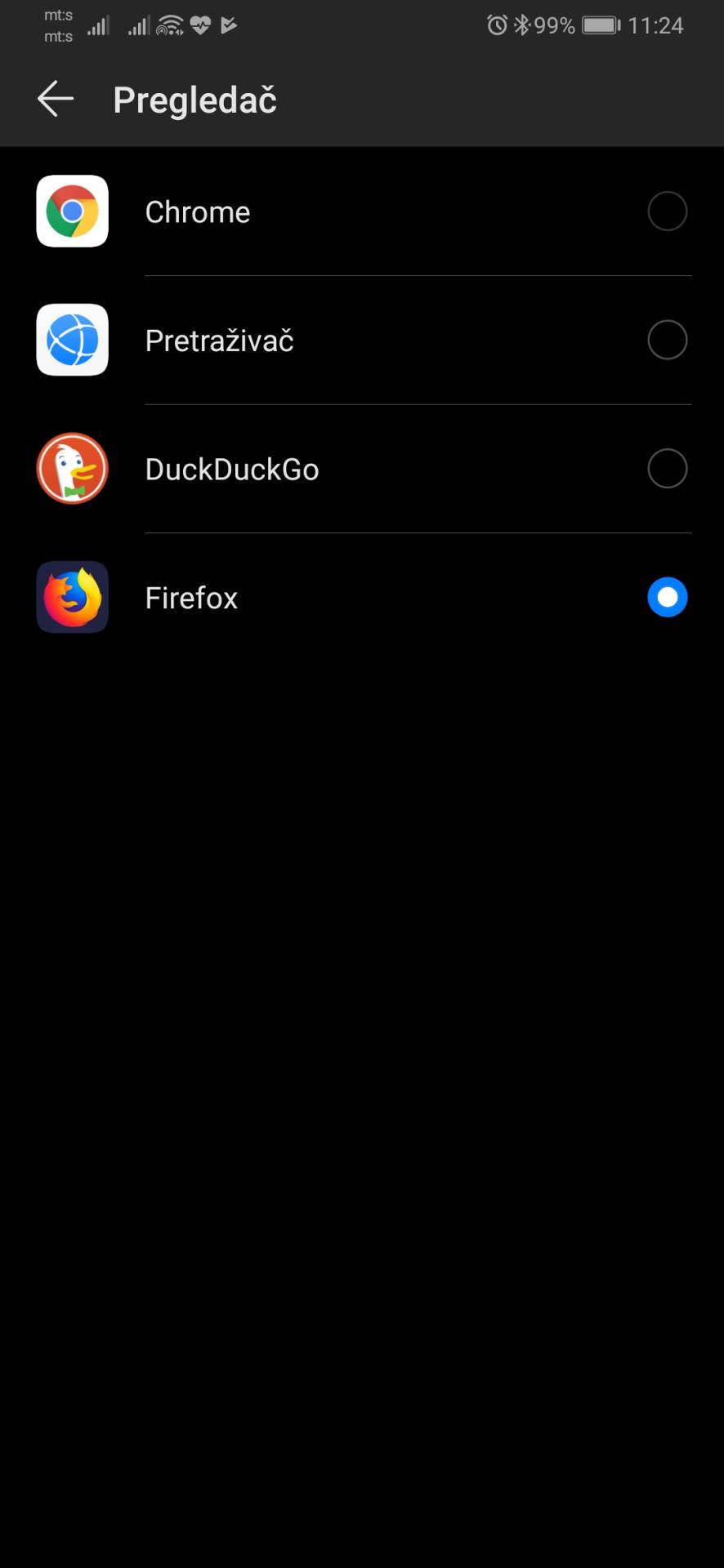 - Podešavanja >Aplikacije >Podrazumevane aplikacije >Pregledač.