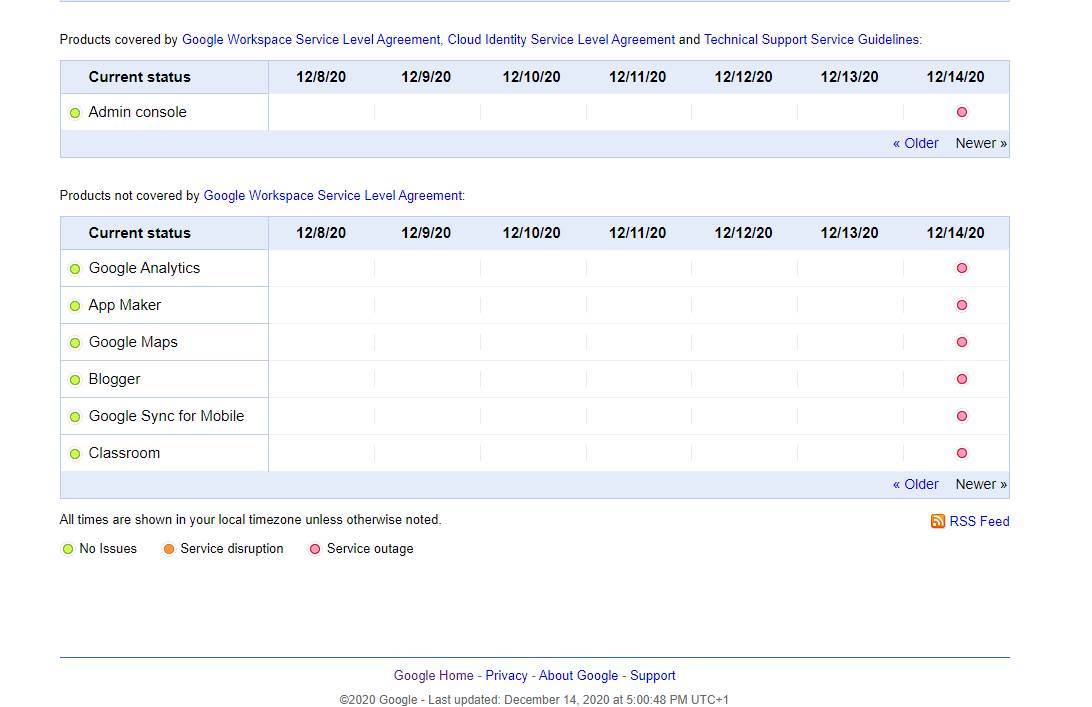 Pogledajte Google Status Dashboard