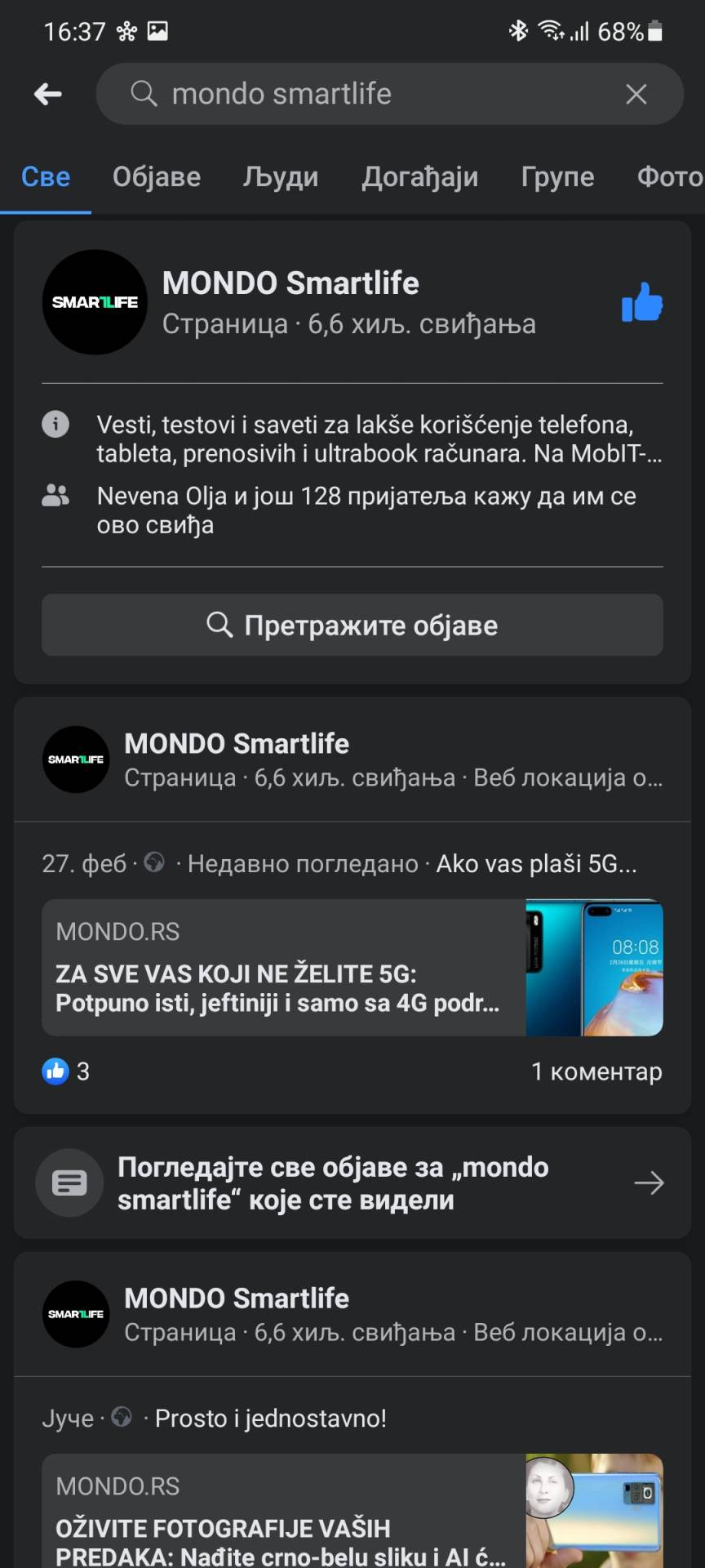 Dark Mode Facebook aplikaciji ne daje potpuno crn interfejs, više kombinaciju sive, crne i tamnih delova u pojedinim delovima aplikacije, ali sve podseća na Facebook Dark Mode za desktop, koji nam je svima dostupan već nekoliko meseci.
