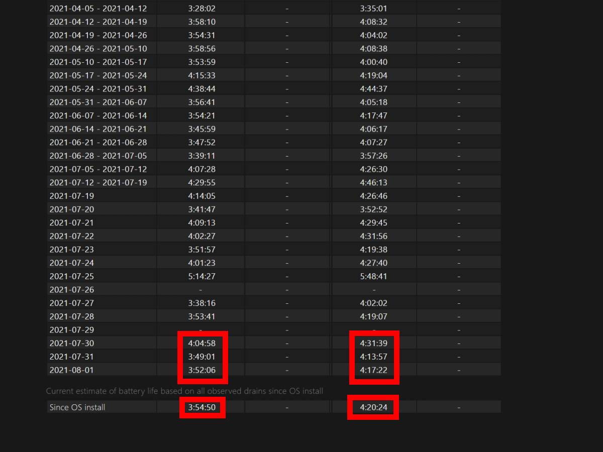 Posle toga pogledajte tabelu na dnu izveštaja, koja je i najvažnija - Battery life estimates.