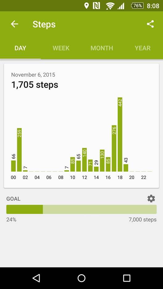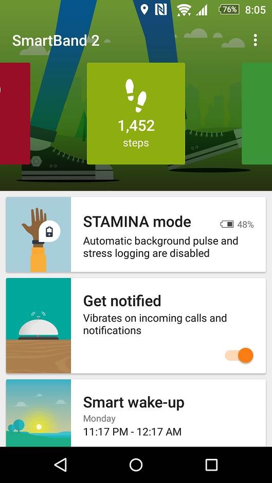 Sve vaše dnevne aktivnosti biće prikazane u gornjem delu, dok se u donjem nalazi dashboard sa šarenim pločicama tj. aktivnostima. Klikom na neku od pločica moći ćete da pogledate detaljan izveštaj za tu aktivnost. Možete postaviti i dnevni cilj, npr. koliko koraka želite dnevno da napravite. Ako budete ostvarili zadati cilj aplikacija će vas obavestiti o tome. Kratki pregled aktivnosti možete pogledati i u okviru SmartBand 2 aplikacije. Za više detalja, ipak ćete biti preusmereni na LifeLog aplikaciju.