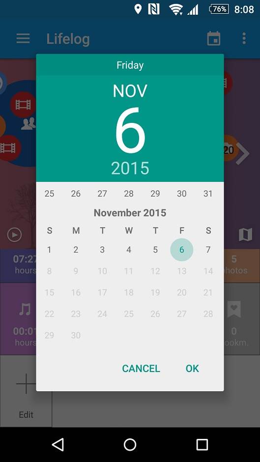 Od pre nekoliko dana LifeLog aplikacija je dobila i donekle novi izgled, sa menijem koji se sada nalazi na levoj strani, odnosno koji se izvlači prevlačenjem prsta s leva na desno.