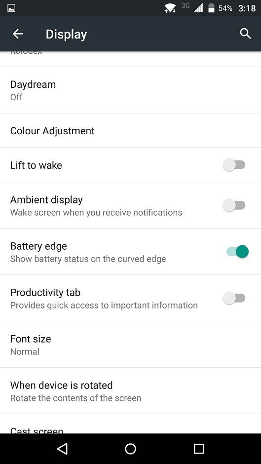 Kada je aktivirana Battery edge opcija, svaki put kada budete punili bateriju, na desnoj ivici ekrana će se pojaviti tanka linija koja prikazuje koliko je baterija napunjena. Lepo izgleda, ali, ukoliko je prostorija u kojoj se uređaj nalazi u toku punjenja slabo osvetljena, linija na ekranu neće biti prikazana.
