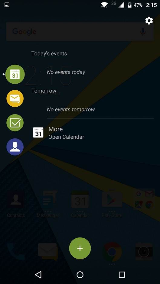 Po mom mišljenju, najzanimljiviji detalj jeste mogućnost prikaza vidžeta jednostavnim pokretom prsta na gore preko ikone određene aplikacije. Pored ikone aplikacija koje podržavaju ovo, kao što je kalendar na primer, biće prikazane tri tačke. Pokretom prsta preko ikone, pojaviće se vidžet. Ukoliko aplikacija nudi više različitih vidžeta, prvi put kada budete koristili ovu mogućnost, moraćete da odaberete vidžet koji vam se najviše dopada. Svaki naredni put će upravo taj vidžet biti prikazan.