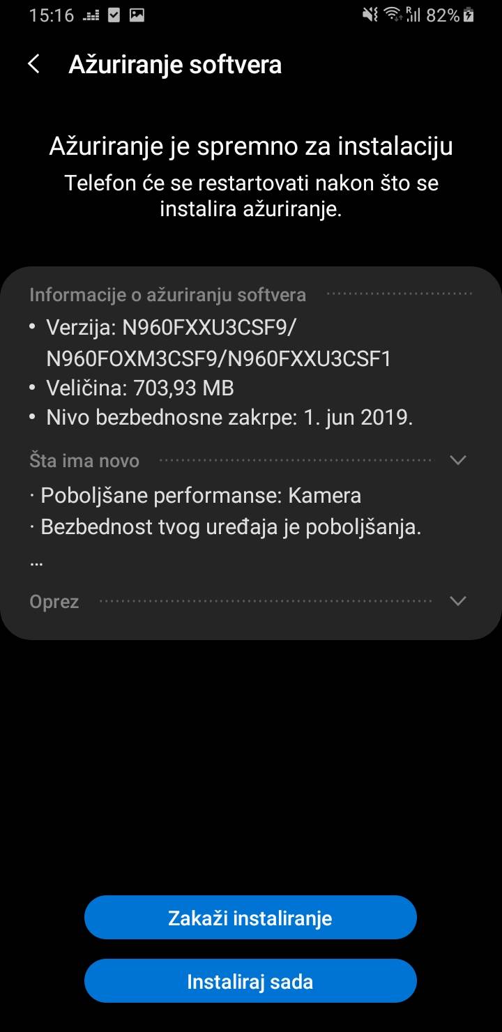 Ažuriranje oznake N960FXXU3CSF9, koje ima oko 705 megabajta, stiglo je i u Srbiju i sa sobom donosi sledeća poboljšanja: