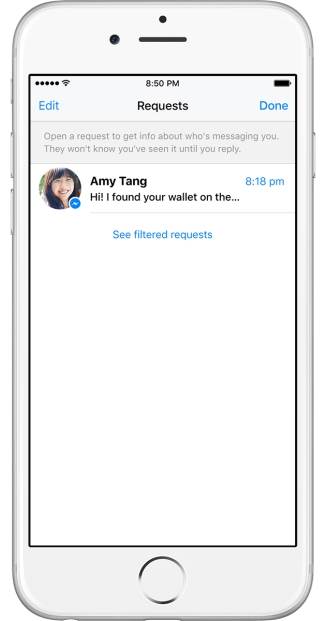 Ako koristite Facebook Messenger moći će da vas kontaktira bilo koja osoba koja to poželi, a koja, takođe, koristi Facebook Messenger aplikaciju ili veb. Osoba koja to poželi moći će da vam pošalje poruku tražeći vas po imenu, nadimku ili čak ako nekako već ima vaš broj telefona (pod uslovom da ste ga vezali sa Messengerom), a vi ćete moći da pročitate poruku uz oznaku "Message Request", koja će se pojaviti s tom porukom.
